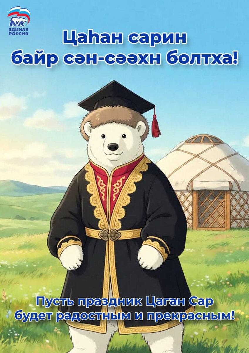 ! С радостью поздравляем Вас с праздником Цаһан Сар – Белого месяца! Этот светлый и радостный день символизирует обновление, весну и надежду на лучшее.🤲 Пусть в ваших домах царит тепло и уют, а сердца наполняются счастьем и любовью. Желаем здоровья, благополучия и исполнения всех заветных желаний. Пусть каждый новый день приносит радость и вдохновение, а впереди ждут только светлые перспективы! С праздником Цаһан Сар! Пусть он станет началом чего-то замечательного в вашей жизни!🙌 #ЕдинаяРоссия #ЦаганСар