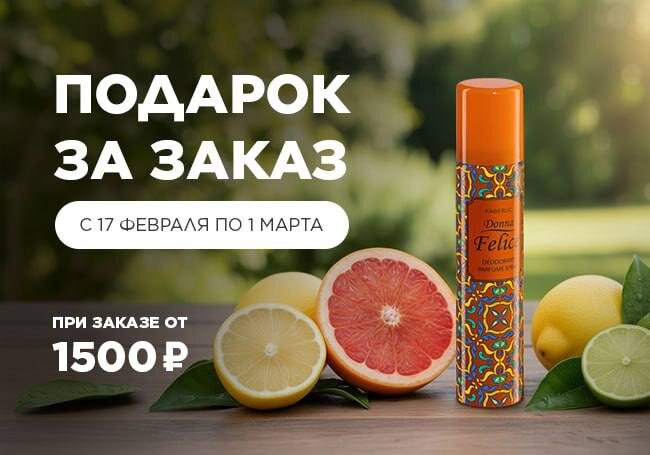 ⬇️ Парфюмированный дезодорант для женщин Donna Felice, арт. 3511 🌹 С 17 февраля по 1 марта некоторые покупатели, которые сделают заказ от 1500 руб. (в ценах каталога) получат в подарок (за 1 руб.) 🎁 Счастливчики получат уведомление по e-mail. Подарок доступен при оформлении заказа в разделе «Персональные акции – Подарок за заказ».