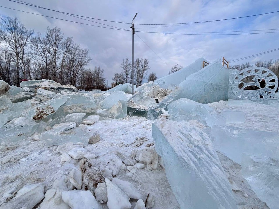 😢 В красноярском Татышев-парке приступили к демонтажу ледового городка