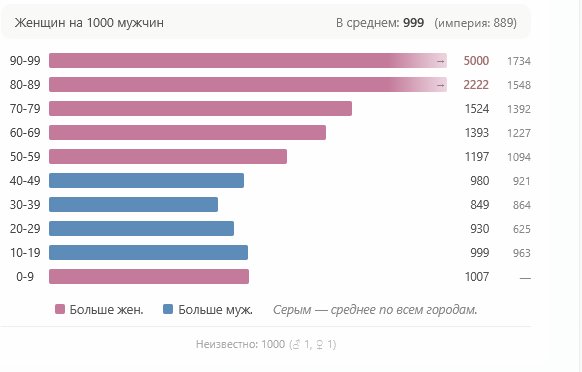 соотношение было практически один к одному (999 женщин на 1000 мужчин).