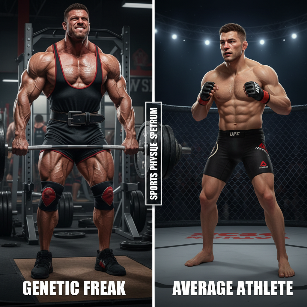 Мы привыкли думать, что путь к вершинам спорта лежит через врожденные сверхспособности: длинные руки пловца, объем легких лыжника, взрывные мышцы тяжелоатлета. Это порождает миф о генетической предопределенности: если при рождении не выдали «золотой билет», можно даже не начинать. Когда говорят о спортивной генетике, обычно подразумевают два аспекта. Назову первый “Внешний\Визуальный” — это антропометрия: длина конечностей, соотношение торса и ног, особенности строения таза или плечевого пояса. Это то, что видно невооруженным глазом и что не изменить никакими тренировками. И второй “Внутренний\Функциональный” — физиология «под капотом»: крепление мышц,, доминирование быстрых или медленных волокон, размер сердца, гормональный фон. Это заводские настройки организма, которые делают одного человека естественным «силовиком», а другого — «марафонцем». Если вы, как и я, не блещете ни тем, ни другим — не спешите отчаиваться. «Максимально средний» статус закрывает дверь в узкоспециализированны