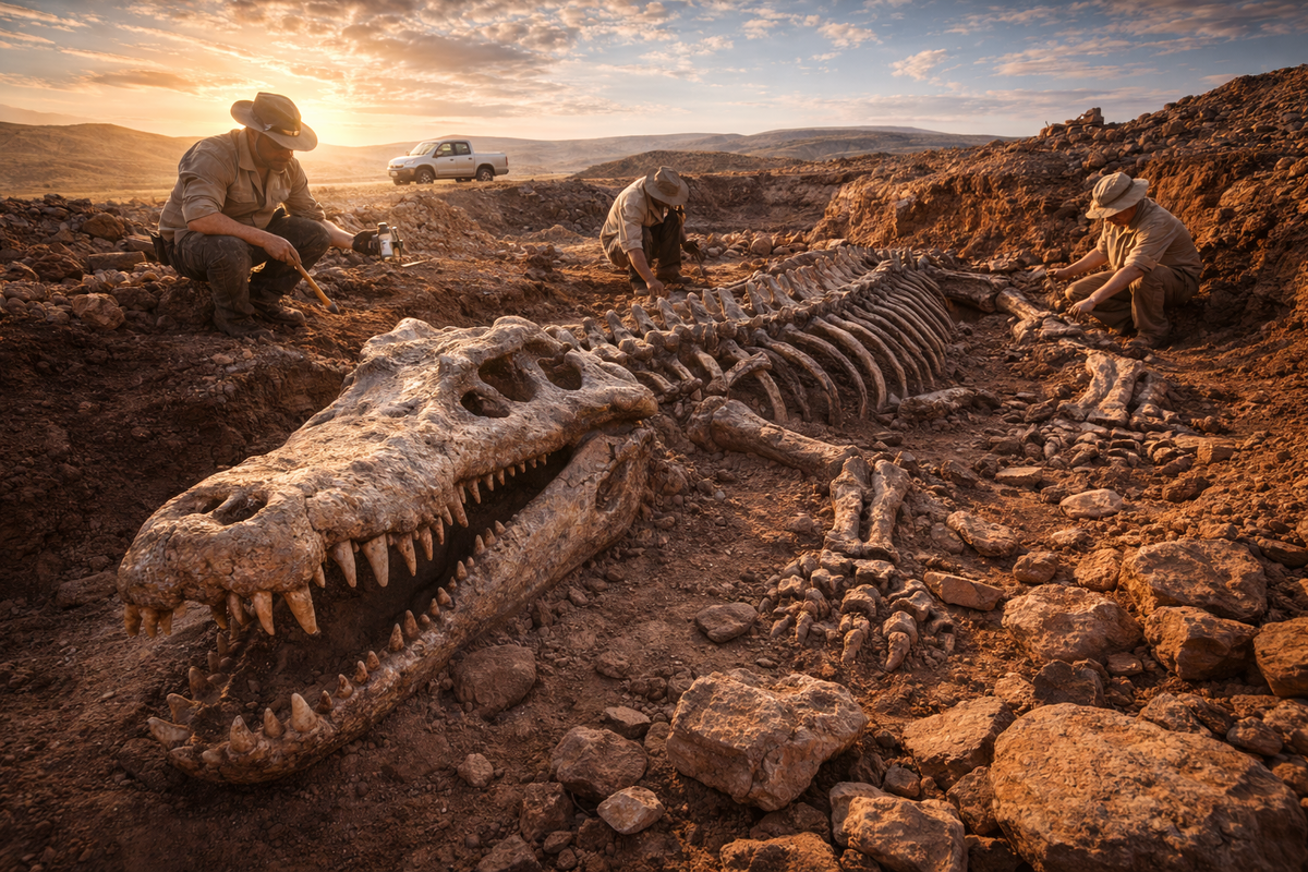 На севере Аргентины палеонтологи обнаружили фрагменты скелета гигантского крокодилоподобного хищника, жившего десятки миллионов лет назад. Размеры находки впечатляют: по предварительным оценкам, длина животного могла превышать восемь метров. Это значительно больше современных представителей семейства крокодилов. Останки были найдены в слоях пород, относящихся к позднему меловому периоду. Регион уже известен богатством древней фауны, но такая находка выделяется масштабом.