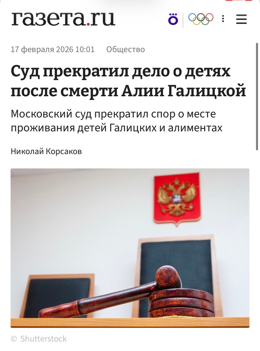⚡️Пресненский районный суд Москвы вынес определение о прекращении производства по спору между Алией и Александром Галицким об определении