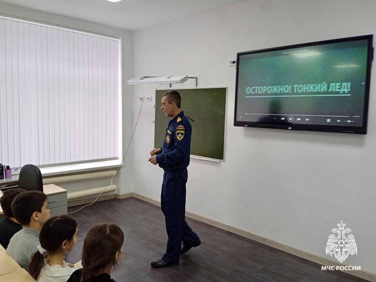 💬Во время познавательных уроков сотрудники краевого чрезвычайного ведомства рассказывают ученикам о правилах безопасного поведения вблизи замерзших водоемов, а также напоминают о категорическом запрете выхода на ледовую поверхность.