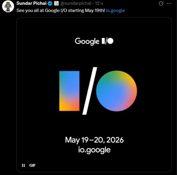 Чё это все про Apple пишут. Google вон тоже свою презентацию будут скоро проводить. А именно 19 мая. Об это твитнул Сундар Пичаи
