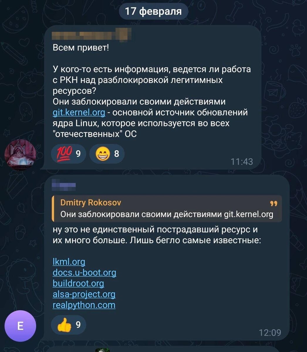 В середине февраля 2026 года разработчикам отечественных ОС пришлось использовать дополнительные сетевые средства, чтобы обновлять ядро. Некоторые разработчики пожаловались на ситуацию в чате Минцифры, но ответа не последовало Telegram | Дзен | MAX