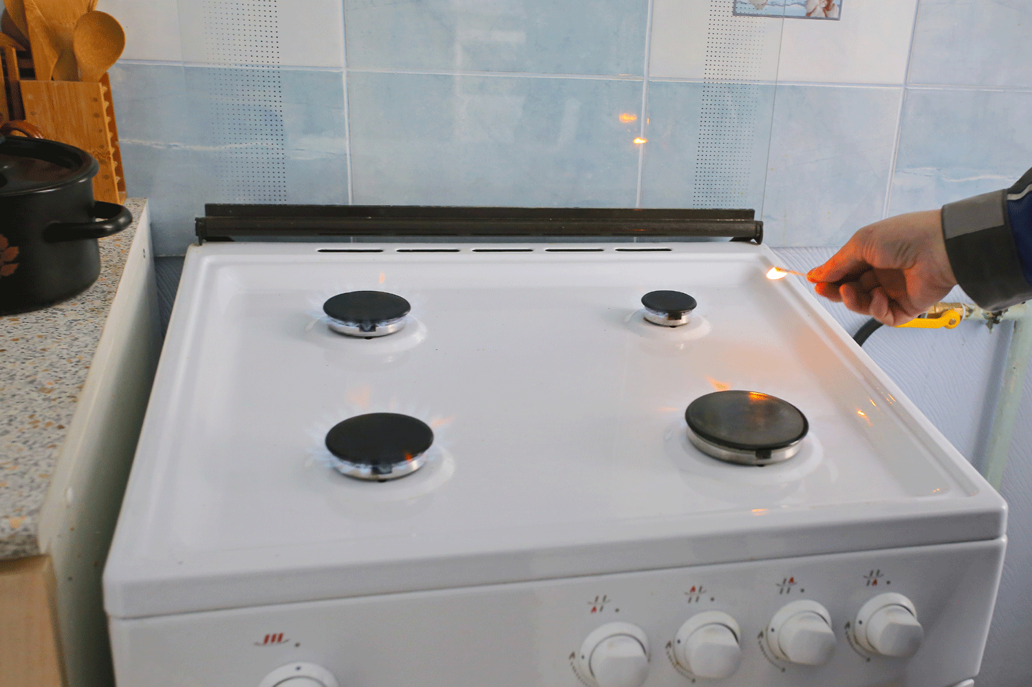 - Чтобы включить плиту, следует сначала зажигать спичку и только потом — конфорку.
