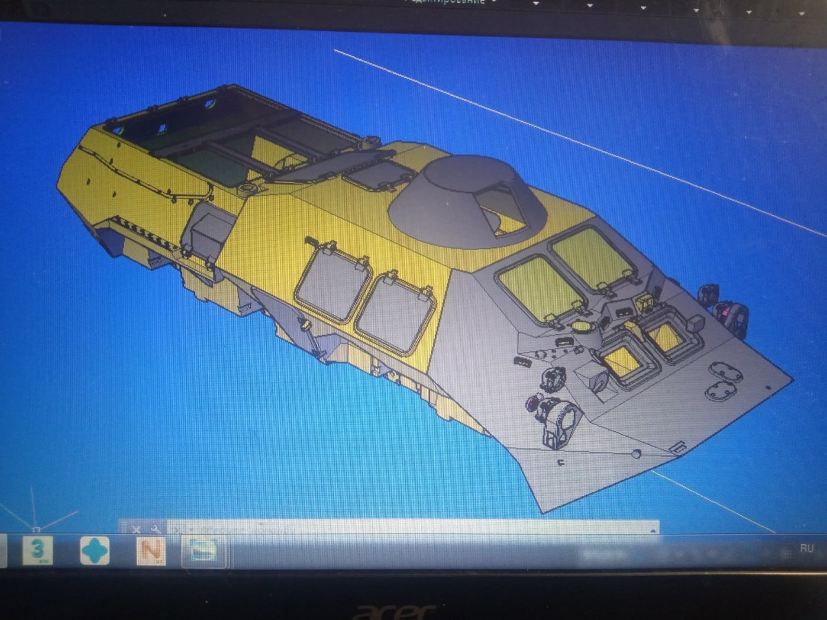 Рубрика "найди десять отличий с вчерашними фото") На самом деле дело движется помаленьку) Не хотел делать проёмы люков - в том числе из-за немасштабной толщины листов... На самом деле, здесь пофиг на эту толщину листов, так как готовый к печати файл будет с закрытыми люками. Почему? Да потому что они нафиг открытыми не нужны. Здесь важно, чтобы печаталось нормально и форму держало. И проёмы люков - это просто экономия смолы. А вот верх МТО, пожалуй, будет съёмным "просто потому что". Просто потому, что так удобнее монтировать двигатель (который когда-нибудь появится, ага)