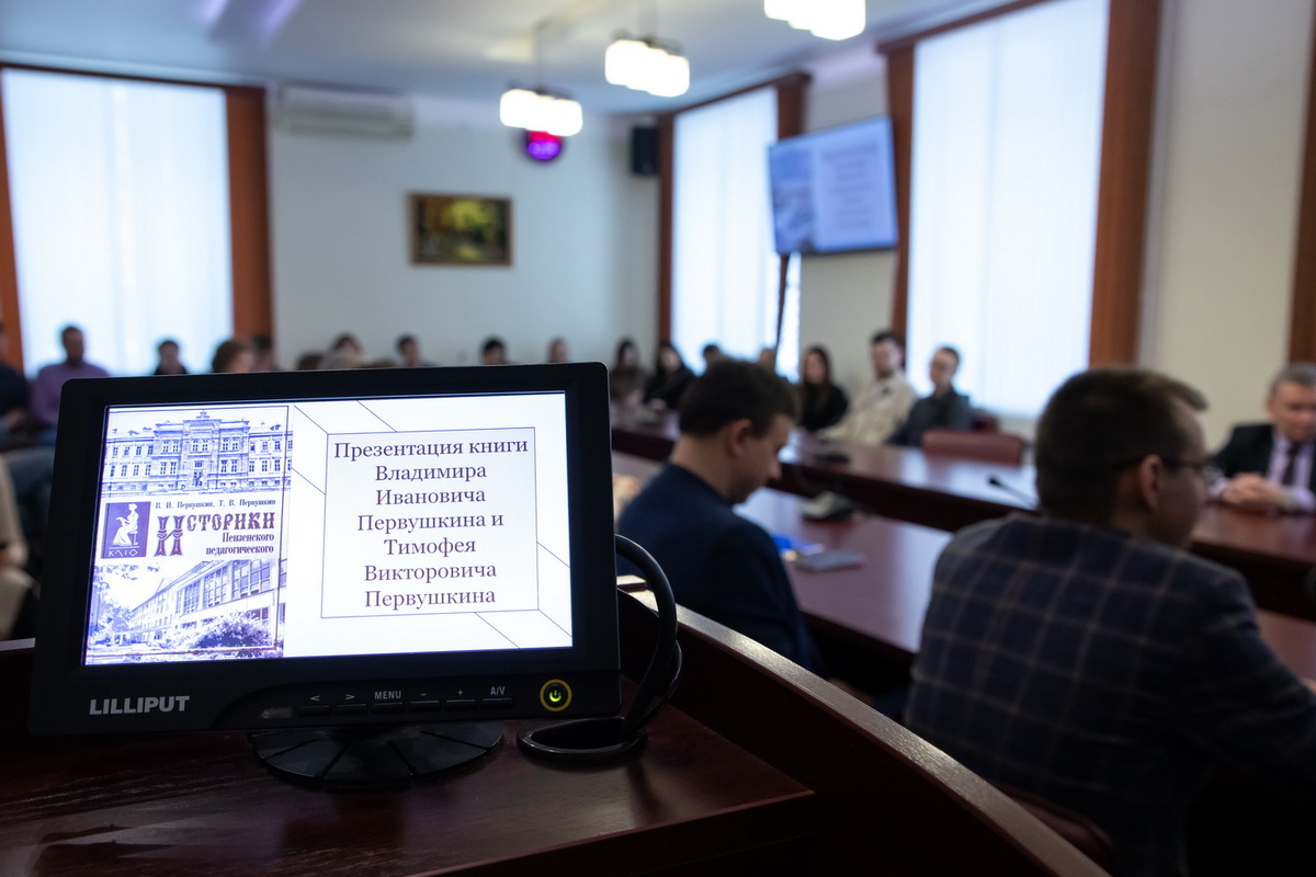 В Педагогическом институте им. В. Г. Белинского Пензенского государственного университета 16 февраля состоялась презентация новой работы Владимира и Тимофея Первушкиных. Книга под названием «Историки пензенского педагогического» посвящена выдающимся ученым вуза. На торжественную презентацию поздравить коллег-историков с выходом работы собрался исторический бомонд Пензенской области. «Эта книга — подробный справочник о 133 историках Пензенского педагогического за последние 85 лет. Она дает возможность изучить биографии преподавателей и их вклад в науку. На встрече авторы расскажут, какую исследовательскую работу они провели, чтобы собрать эти сведения под одной обложкой» — так охарактеризовал труд один из авторов, Владимир Первушкин. Общую редакцию книги осуществил первый заместитель председателя правительства региона Олег Ягов. Он отметил, что Педагогический институт им. В.Г. Белинского стал альма-матер для целой плеяды выдающихся ученых, руководителей, представителей сферы образовани