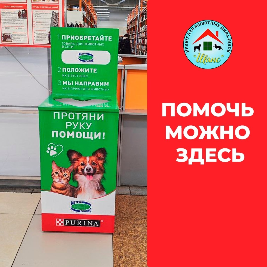Эти боксы установлены «Банком Еды Русь» в рамках благотворительной помощи бездомным животным. Все корма из боксов направляются в приют «ШАНС». То есть это тот редкий случай, когда помочь можно по пути: заехали в супермаркет - положили пакет корма в короб и он доедет к нашим хвостикам. Если будете рядом - пожалуйста, не проходите мимо. Любой пакет сухого корма/консерв - это очень ощутимая поддержка. 📍 Адреса боксов: 🌟 ТЦ Дома 🌟 ТЦ Рио 🌟 ТЦ Пушкинский У милосердия нет выходных. Помогайте рядом с домом 🧡