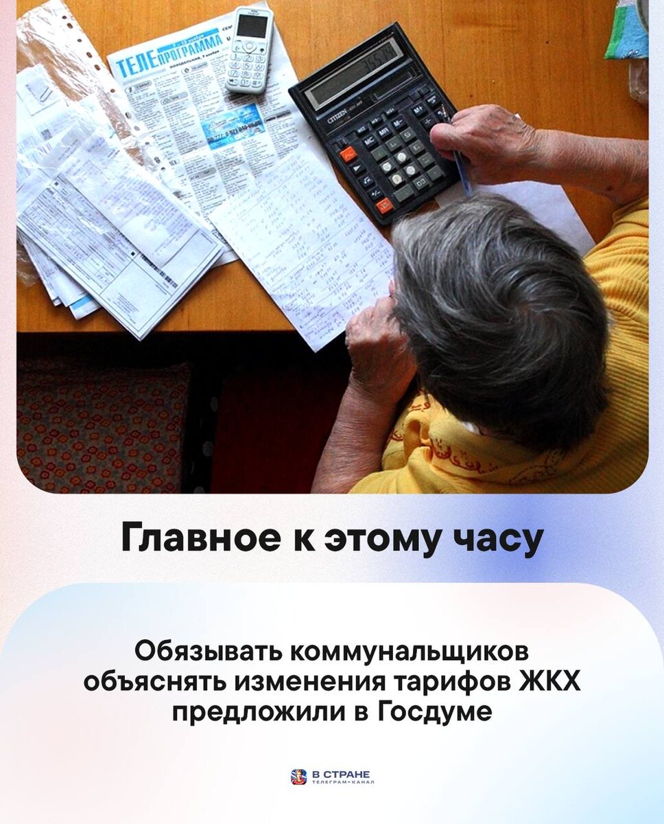 : 🔹Обязывать коммунальщиков объяснять изменения тарифов ЖКХ предложили в Госдуме. 🔹Родители не обязаны покупать ребенку учебники, их должна предоставить школа, рассказали в профсоюзе образования. 🔹Средняя зарплата свыше 200 тыс. рублей зафиксирована уже в двух регионах РФ — на Чукотке и в Магаданской области. 🔹Российская фигуристка Аделия Петросян занимает пятое место после короткой программы на Олимпиаде. 🔹Штраф до 5 тыс. рублей грозит за уборку квартиры вечером, предупреждают юристы. 💰Курсы валют: доллар — 📈76,73; евро — 📉90,86; юань — 📉11,09. ✅ «В Стране» в MAX