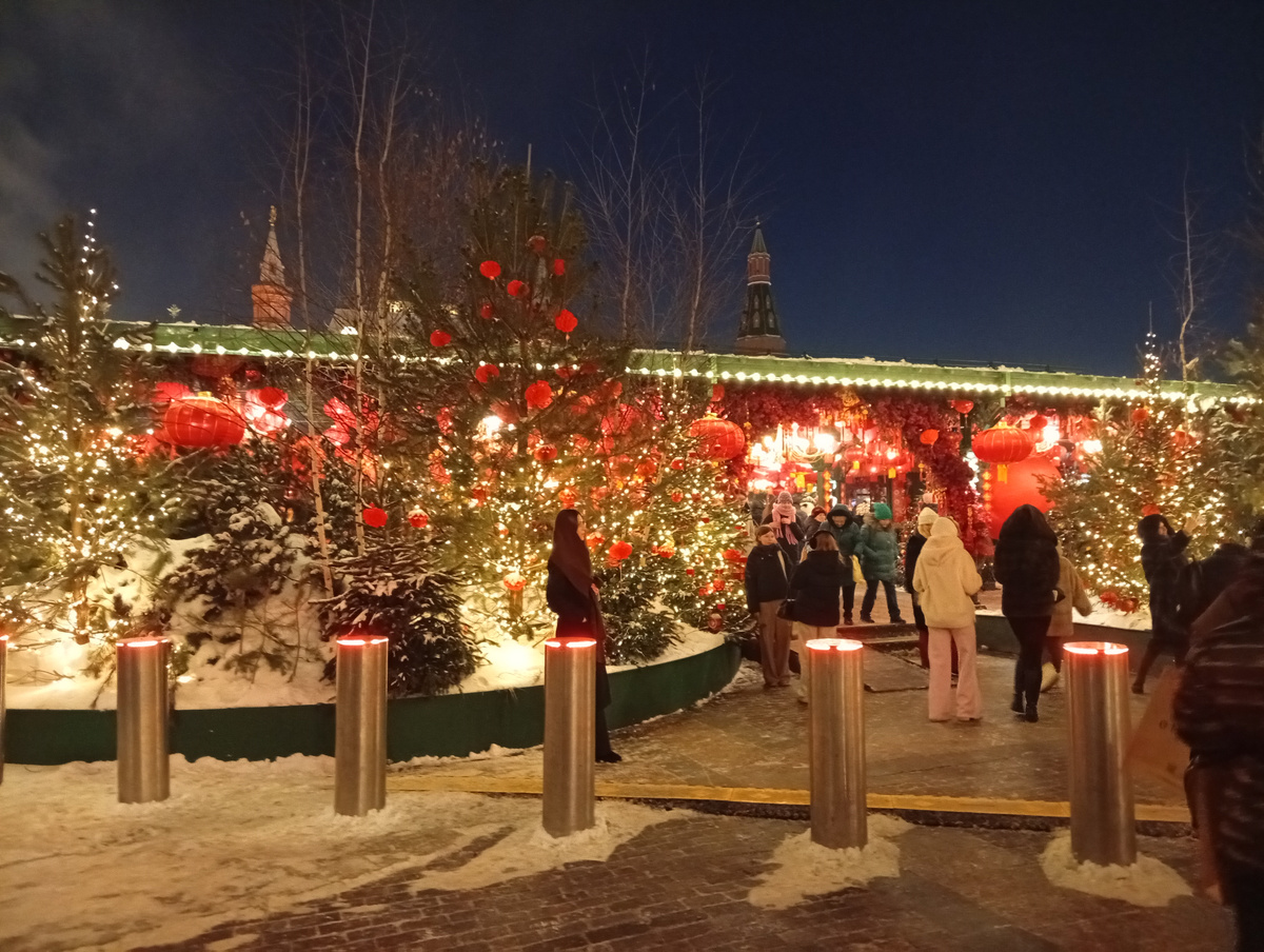А вот и башни Московского Кремля уже видны сквозь гирлянды. Подхожу к главному объекту площадки.