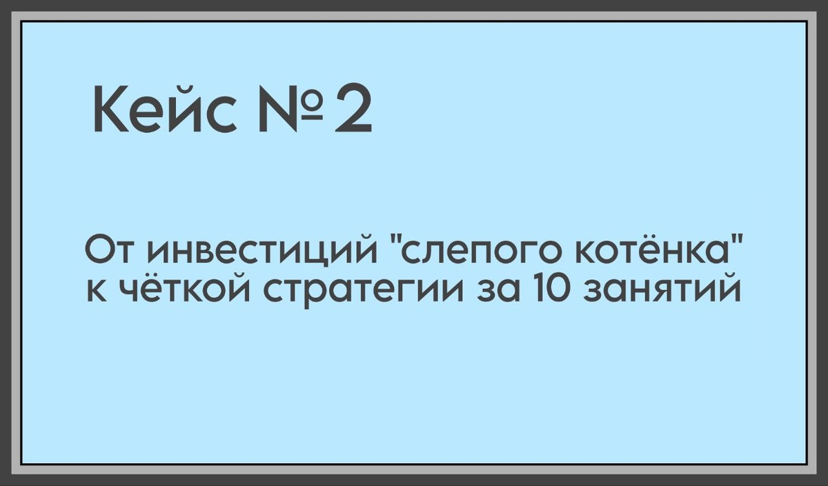 Алина, менеджер в крупной федеральной компании, Казань История Алина — очень системный человек, с хорошим доходом, без долгов, с опытом инвестиций и с привычкой регулярно откладывать деньги. Казалось бы, почти идеальная отправная точка. Но накопления регулярно «обнулялись» после крупных трат — отпуск, ремонт, машина — и каждый раз приходилось начинать заново. Опыт инвестиций тоже был. В портфеле оказались почти все инструменты, которые обычно покупают без стратегии: что-то по совету знакомых, что-то «на хайпе», что-то просто из интереса. Качественные инструменты тоже были — но без системы, поэтому ощутимого результата не получалось Запрос Выстроить осознанную систему управления финансами и перевести теорию в устойчивую практику. Что делали За 10 занятий (в течение 5 месяцев) мы прошли весь путь — от наведения порядка в личных финансах до формирования инвестиционной стратегии. Сфокусировались на трёх ключевых направлениях: 1. Контроль и система •финучёт, занимающий не больше