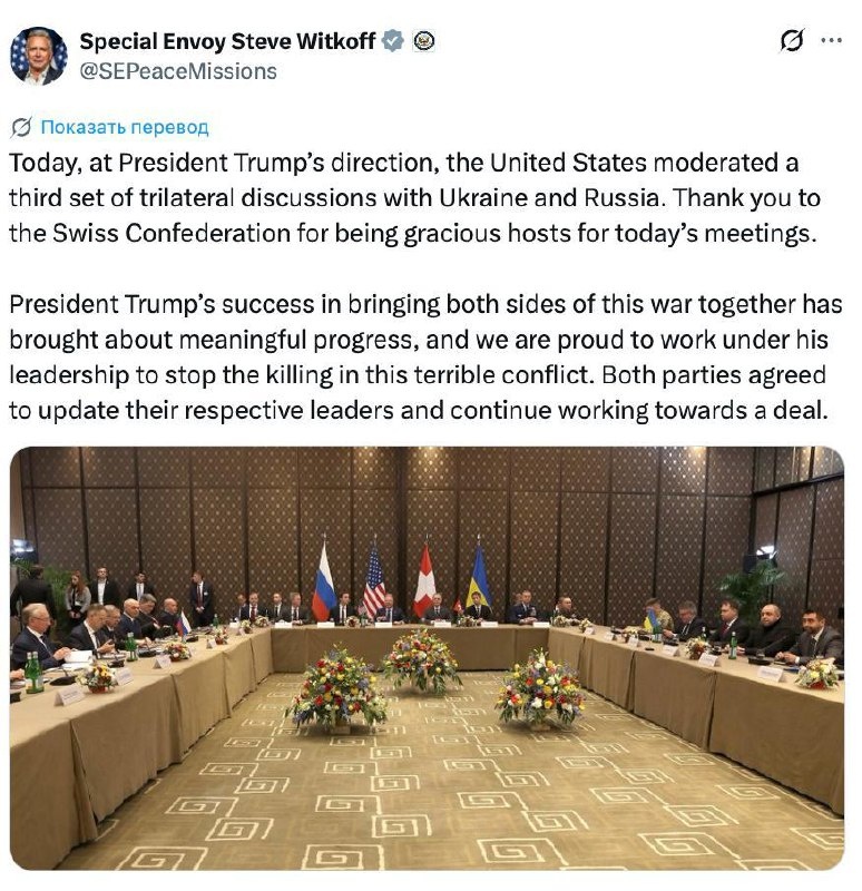 О значительном прогрессе в переговорах по Украине заявил Стив Уиткофф по итогам первой встречи в Женеве