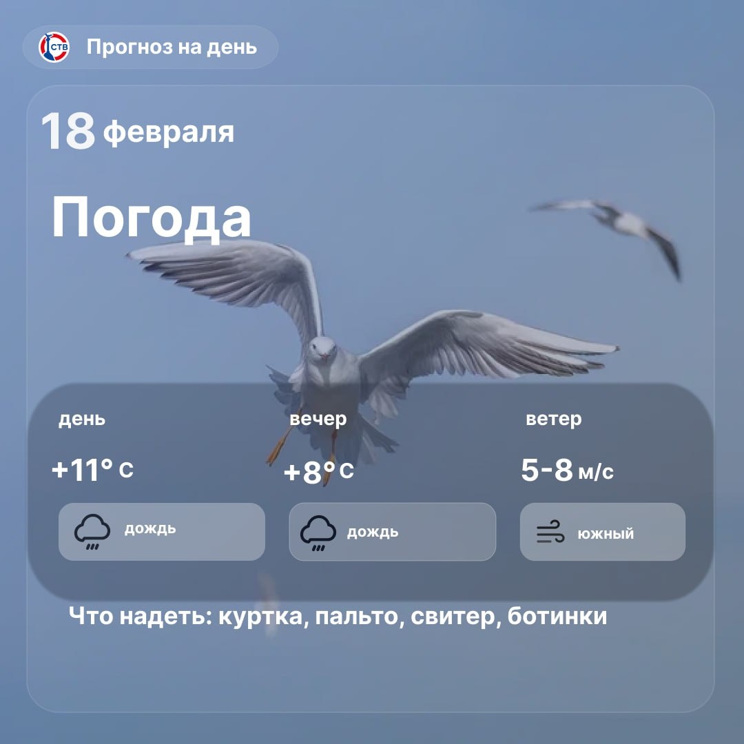 Сегодня в городе дождь, температура воздуха до +11°C. Порывы ветра могут достигать 17–22 м/с. Будьте внимательны и берегите себя. 📺 СТВ в MAX