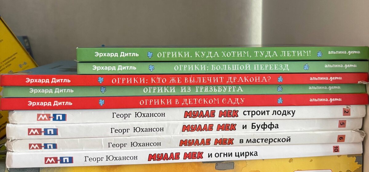 #библиотечное 💫 МУЛЛЕ МЕК И ПРОЧИЕ ОГРИКИ 🔠юбим мы книги сериями читать, что кривить душой! 📚Набрала сразу все, какие нашла в доступе. Про огриков, зеленых и вонючих, уже рассказывала , на этот раз мы путешествовали с ними по туманной Шотландии, знакомились с местным приведением, развлекались в детском саду под присмотром бабушки Огри, узнавали, откуда взялся дракон Огнепых, а также выясняли, что лучше дома ничего на свете нет! В конце почти каждой истории есть ноты с огри-песней. Для умеющих музицировать и петь 🎵 📚Про умельца на все руки Мулле Мека тоже писала, книги разделяются на совсем простенькие, для детей помладше, и на те, где есть сюжет более развернутый, чем как собрать автомобиль (что тоже важно, конечно). ✔️Но, кстати, хочу отметить, что с такими историями удобно обсуждать с ребенком поступки героев, как бы он поступил или почему произошло то или это. Ненавязчиво — что в нашем деле важно! 💙 Мой фаворит из этой коллекции — как собака Буффа решила от души помочь х