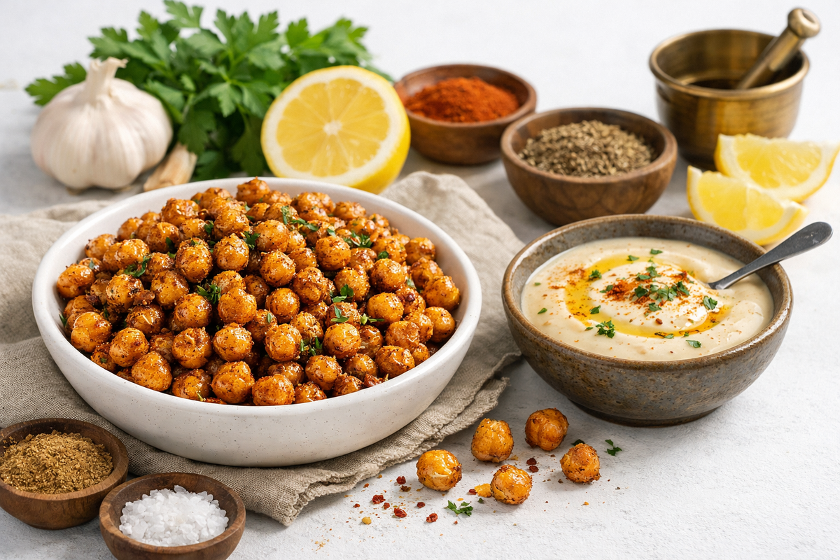 Иногда хочется не «очередной салат», а что-то с характером - чтобы хрустело, пахло специями и собиралось за полчаса. Этот нут я делаю, когда надо быстро поднять вкус любой тарелки: на листья, в боул, к овощам, к супу вместо сухариков. А соус тахини-лимон превращает всё в «как в хорошем месте», но дома и без лишних затрат.