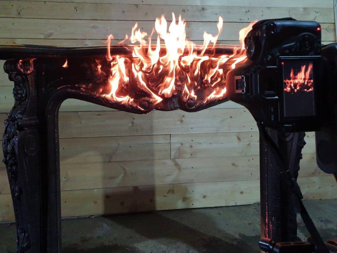 Портал для камина преобразился. Добавили глубокого чёрного стиля.