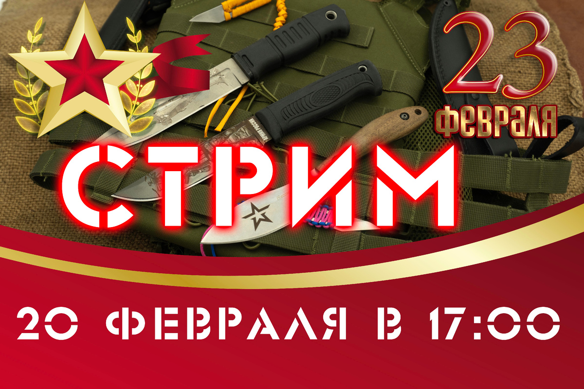 20 февраля в 17:00 будет проведен стрим розыгрыш ножей нашего производства и не только. Стрим пройдет в официальной группе ВК https://vk.com/kizlyarofficial Условия просты быть подписанными на канал и присутствовать на стриме. розыгрыш будет среди участников стрима.