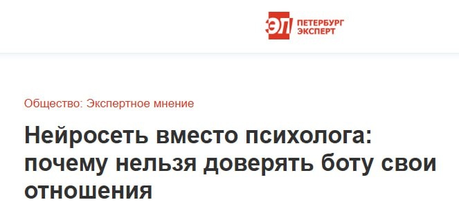 "Петербург Эксперт" попросил прокомментировать использование нейросетей в личных отношениях в моей новой статье