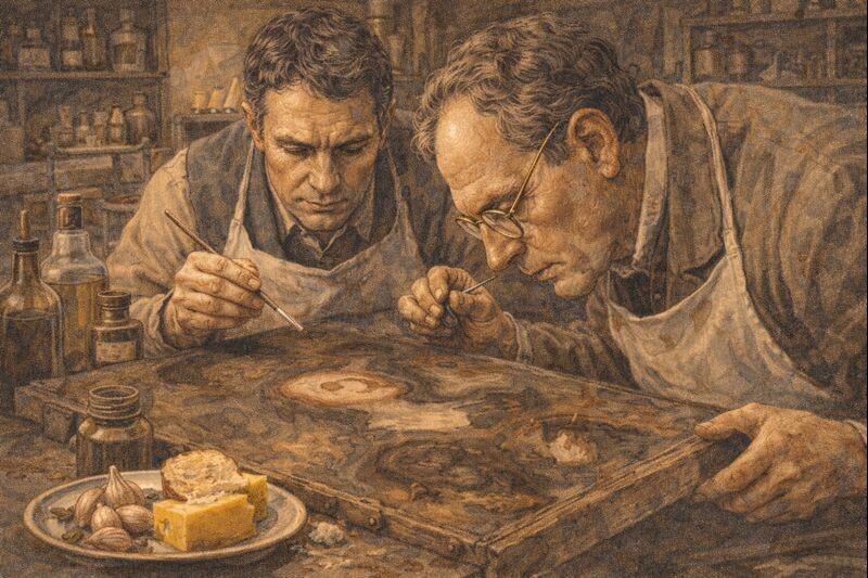 🎨 Питание реставраторов картин В начале XX века реставрация живописи еще не была полностью лабораторной наукой. Реставраторам запрещали приступать к работе после еды с резким запахом: лук, чеснок, копчености. Причина была профессиональной. По запаху растворителей, клеев и смол определяли, как реагирует слой краски и не начинается ли нежелательная химическая реакция. Чужой запах сбивал обоняние и мог привести к ошибке. Поэтому питание в рабочие дни подстраивалось под сохранение чувствительности носа — так же строго, как освещение или влажность в мастерской.