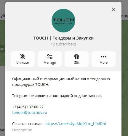 Да, в Telegram. Да, мы тоже читаем новости. Да, знаем, что «телеге недолго» — по версии экспертов последних 7 лет. Но решили: месяц потестируем. Там будем публиковать: — анонсы тендеров TOUCH; — предмет закупки; — сроки участия. Если вы подрядчик и хотите работать с TOUCH — подписывайтесь. Если не хотите — то у вас точно есть друг, который хочет работать с TOUCH. #партнеры@ss_shiza