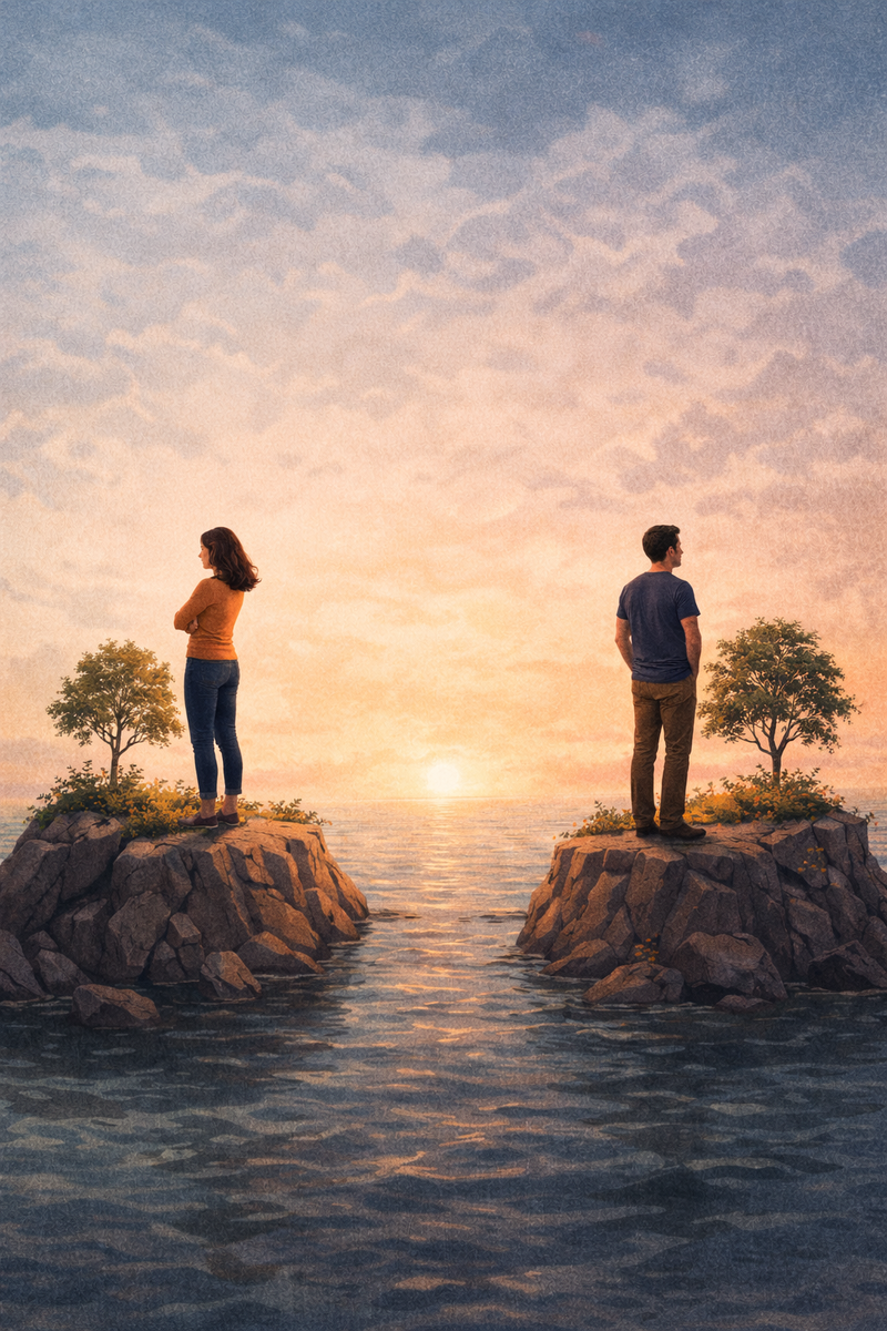 Быть по отдельности — значит сохранять пространство, где реализуются собственные цели, не полностью совпадающие с целями пары. Это снижает внутреннее противоречие и делает совместность более осознанной, а не вынужденной.