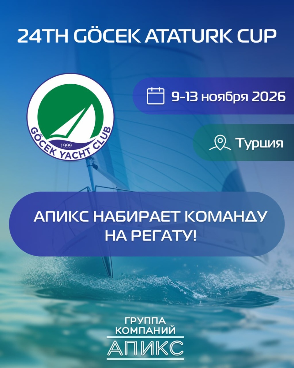 ? Второй год подряд мы отправляемся покорять морскую стихию вместе с партнёрами! Компания Апикс приглашает на престижную международную регату «24th Göcek Ataturk Cup», которая пройдёт с 9 по 13 ноября 2026 года в Турции! Гёджек — это жемчужина турецкого побережья, а сама регата — настоящее событие мирового уровня для тех, кто ценит свободу, скорость и стиль 🎯 Хотите стать частью команды Апикс на «Göcek Ataturk Cup»? Узнайте детали и запишитесь по телефону: + 7 965 461 26 30 📣 До встречи на борту!