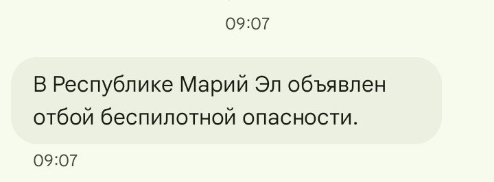 ⚡️В Марий Эл объявлен отбой беспилотной опасности, сообщает РСЧС