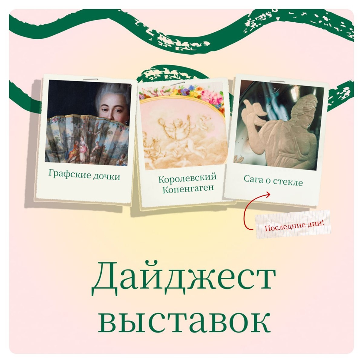 ?🏛🏛🏛 Дайджест выставок 18-22 ФЕВРАЛЯ ▪️Сага о стекле в Эрмитаже — до 22 февраля ‼️ Ретроспективная выставка, посвященная творчеству династии художников по стеклу из Санкт Петербурга. На примере авторских работ этой семьи можно проследить развитие художественного стекла в СССР и современной России за последние полвека и оценить вклад каждого из представленных художников в историю отечественного стеклоделия ▪️Графские дочки во Дворце Выставка посвящена предметному миру, окружавшему юных аристократок XVIII века. Экспонаты — различные «фрагменты» их быта — последовательно раскрывают грани жизни знатной девушки эпохи и дух «галантного века», золотого века усадьбы ▪️ Королевский Копенгаген и Россия, вперед! в Большой каменной оранжерее 2 выставки в одном билете Королевский Копенгаген — уникальный в истории музея монографический проект посвящен феномену фарфора Дании последней четверти XVIII — второй половины XХ века. Копенгаген – один из важнейших центров европейской керамической