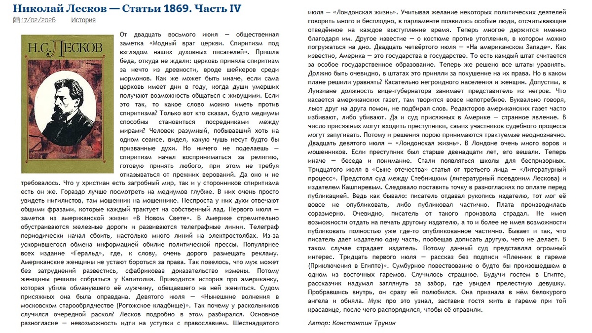 Николай Лесков — Статьи 1869. Часть IV | Критика