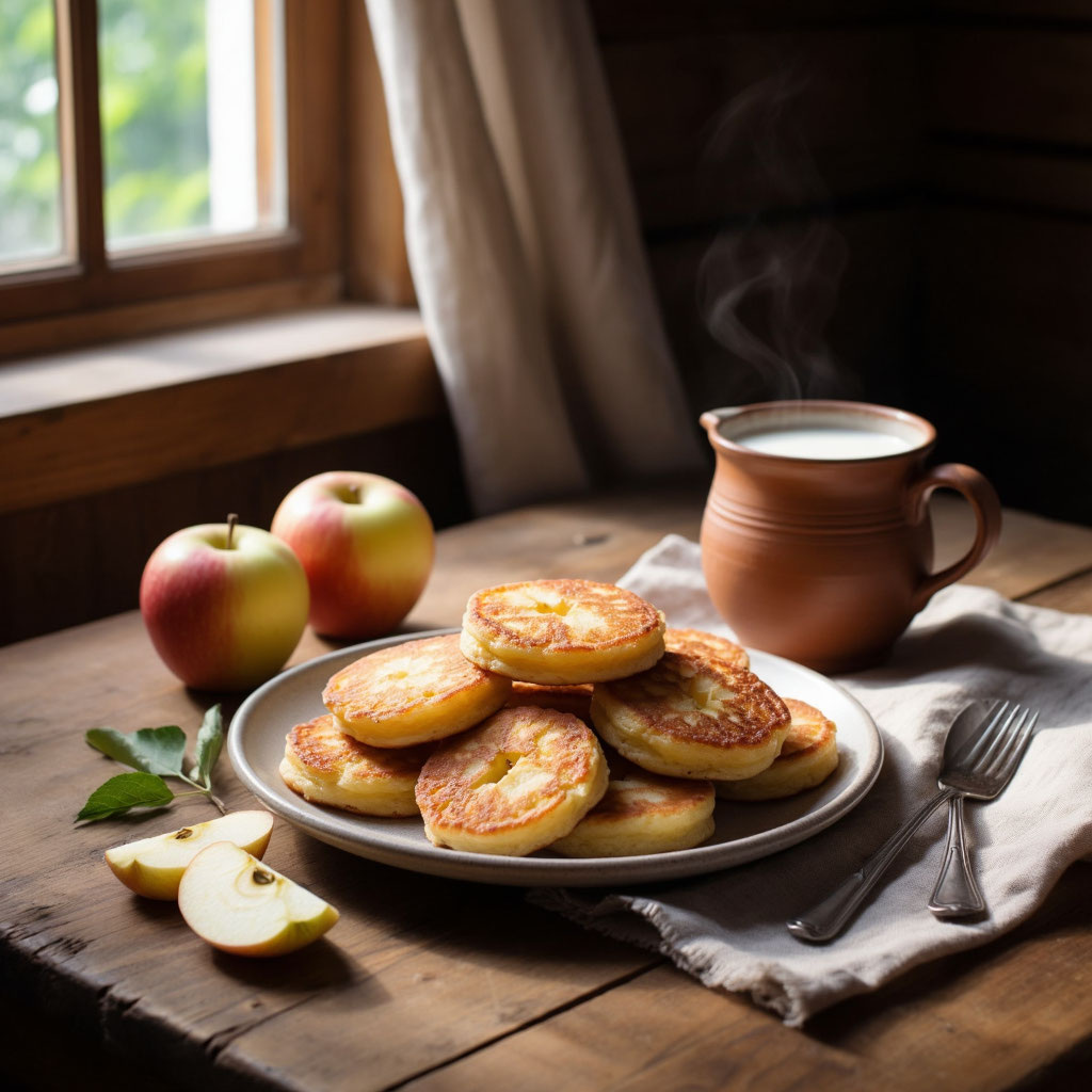 Оладьи — блюдо простое. Но стоит добавить к тесту свежие яблоки, и всё меняется. Появляется аромат. Лёгкая фруктовая сладость. Сочная текстура. В старых русских домах такие оладьи часто готовили осенью, когда яблоки были свежими и сочными. Это был способ превратить обычное тесто в настоящее лакомство. И главное — никаких сложных техник. Ошибка многих — натирать яблоки слишком мелко. В результате они дают слишком много сока, и тесто становится жидким. Лучше нарезать яблоки мелким кубиком или натереть на крупной тёрке и слегка отжать лишний сок. Так оладьи сохранят форму и будут сочными внутри. Готовые оладьи должны быть: Если хотите более карамельный вкус, добавьте щепотку корицы.