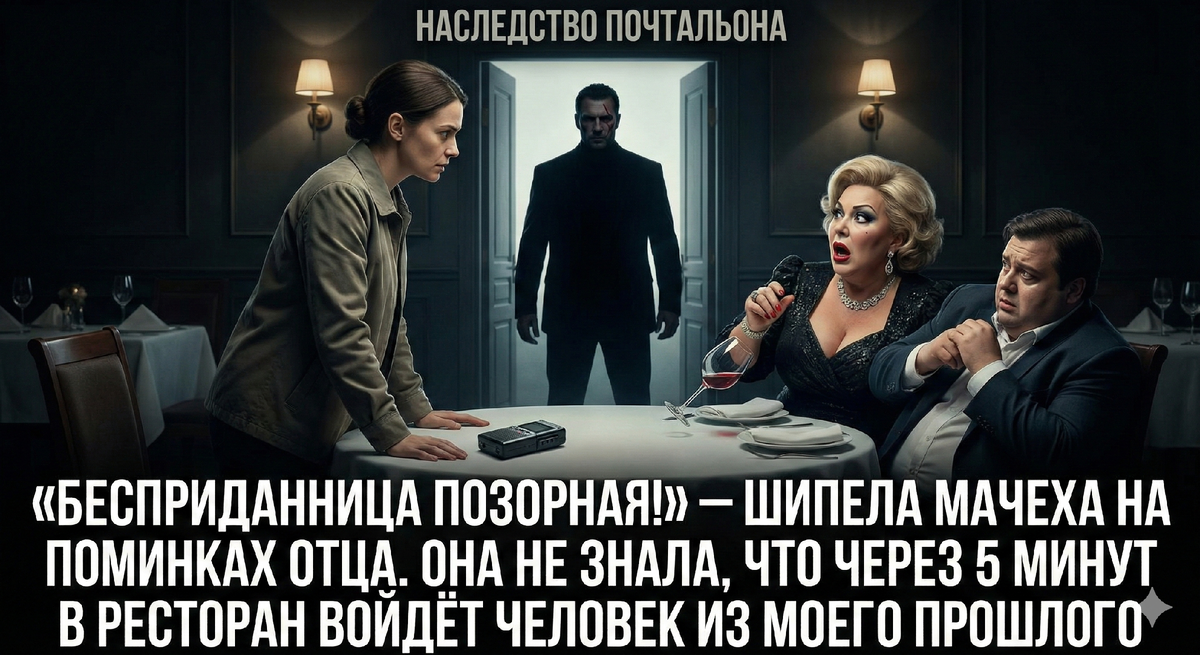 — Бесприданница позорная! — вдруг выплюнула мачеха, и её голос эхом разнесся по притихшему залу ресторана. — Всю жизнь на отцовской шее просидела со своей сумкой почтовой, ни копейки в дом не принесла.