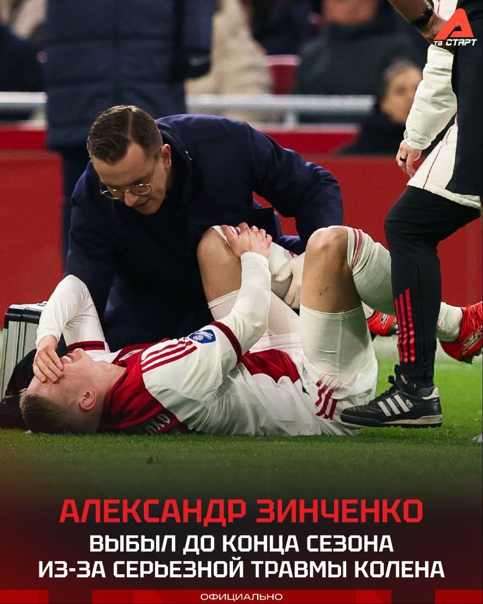 Александр отыграл за «Аякс» всего двадцать одну минуту. Травма колена надолго выбила украинского защитника из строя, точные сроки восстановления станут известны после более глубокого исследования. Скорейшего возвращения на поле, Александр 💪 Подписывайся на ТВ СТАРТ в MAX📲