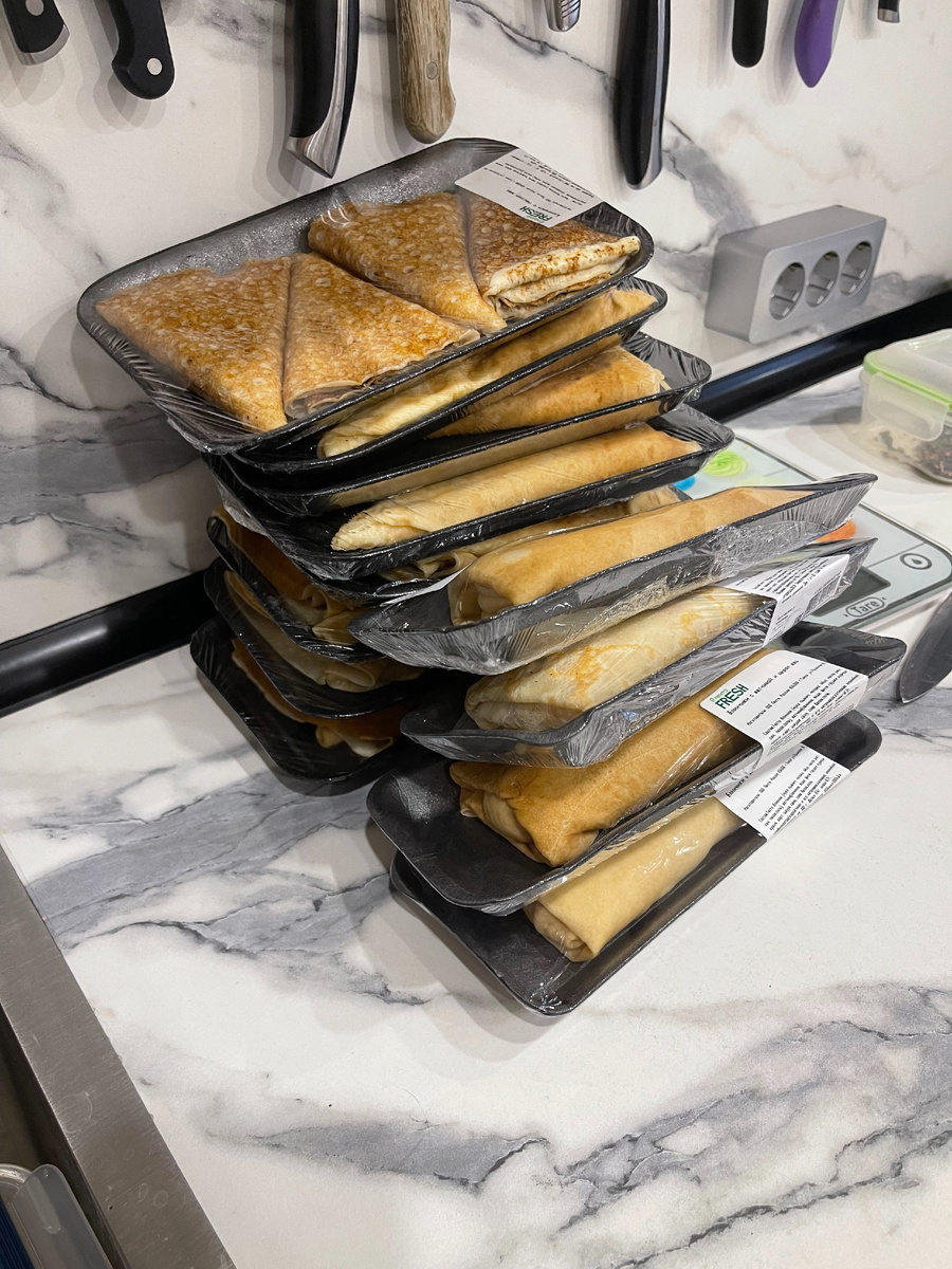 В нашей семье я, младший сын и третий кот очень любим вкусно поесть. Сыну 12 лет, он внимательно следит за всеми праздниками, чтобы обязательно их праздновать чем-нибудь вкусным. И тут вдруг наступила Масленица, он попросил меня приготовить блины. Я решила, что и доставка сгодится. Заказала блины в «Ленте». Не я одна такая умная оказалась, поэтому блинов привезли мало. Каждому из нас досталось по одному с ветчиной и сыром и по три без начинки - с маслом. Домой с работы я мчалась с предвкушением предстоящего волшебства. Дети уже ждали меня дома чтобы поровну разделить между всеми блинчики. Младший не устоял и до моего приезда съел парочку блинов. Разделила. Муж, на удивление, тоже принял участие в этом мероприятии, обычно он строит из себя принцессу: то не ест, это не ест и каждый раз выговаривает, что мы тратим очень много денег на еду. В нашей семье это не прокатывает, не ешь – твои проблемы, желающие на порцию всегда найдутся. Муж быстро понял эти правила игры и теперь тоже научился