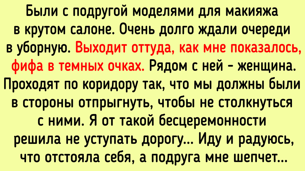 Встретить кумира мечтают миллионы, но реальность часто превращает этот момент в забавный конфуз. В нашей подборке — люди, которые умудрились «навтыкать» поп-звездам, отнять цветы у Высоцкого и наступить на Хью Джекмана. Ехала я как-то в лифте с Данилой Козловским. Вдвоем. Стою и без остановки про себя повторяю: «Я к нему равнодушна», — и усиленно пялюсь на облупленные кнопки, как будто они очень интересные. Три этажа мы ехали так, будто их было сто! Тут вдруг Козловский взял и принялся читать вслух и с выражением техническое описание лифта. Как же я смеялась! © alinaseliver Поехала в командировку. Дело до интернета еще было, поэтому еле-еле отель отыскала. На дворе 6 утра, устала очень. И тут с балкона какой-то мужик мне: «Ой, девушка, откуда это вы так рано?» Я его дерзко так отшила. В отель захожу, а админ с улыбкой выдает: «А у нас здесь артисты, Салтыков — тот, который пел „Кони в яблоках“». И тут до меня доходит — на балконе был он! © ikapika16 Сижу я офисе и качаюсь на стуле сп