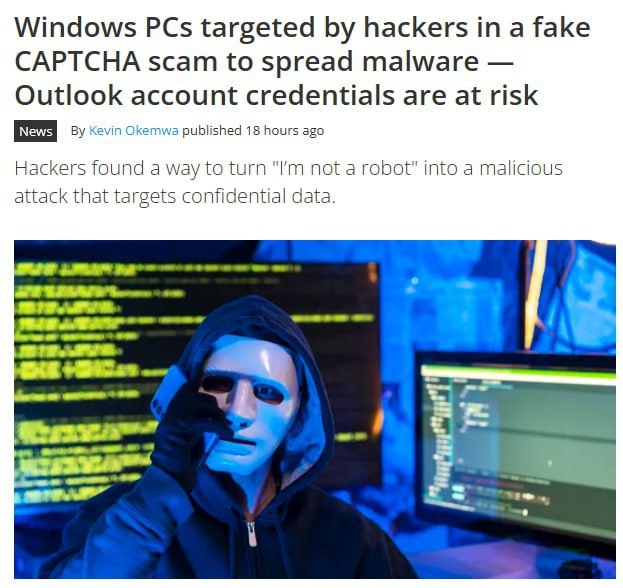 Капча может украсть все ваши пароли мошенники нашли новый способ взлома. Работает так: вы заходите на сайт, где видите фейковую страницу и Cloudflare, но вместо выбора картинок вам предлагают нажать Win + R, вставить код и нажать Enter. По факту, в буфер обмена уже подгружена вредоносная команда для PowerShell. После её запуска на компьютер устанавливается StealC троян, который крадёт пароли из браузера, данные Outlook, криптокошельки, Steam-аккаунты и отправляет всё на сервера мошенников. Никогда не забывайте, что капча зачастую про выбор картинок, а не про вписывание сомнительного кода. CtrlAltDelights- подписаться