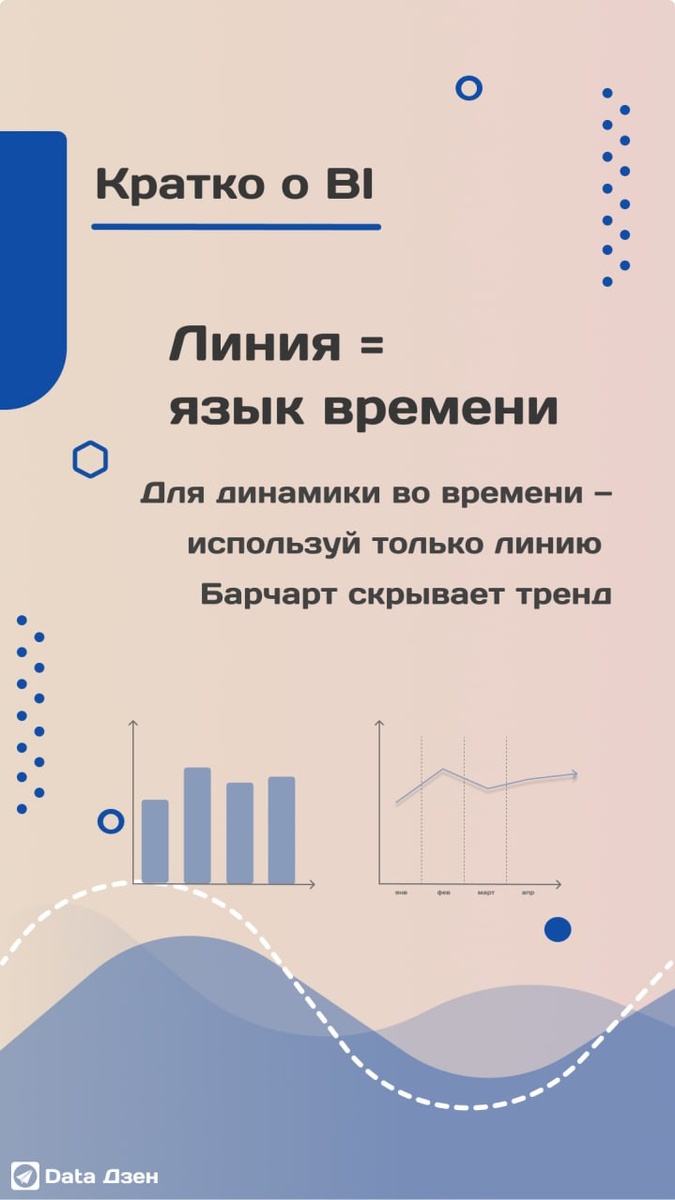 📈 Барчарт сравнивает категории. А линия показывает: мы идём вверх, тормозим, падаем. Это не «красиво» — это просто. Поначалу я тоже делал линии супер-скруглёнными — казалось, так «аккуратнее». Получалась не динамика, а спокойная рябь на пруду. Пока мне пару раз не дали по шапке: «Где рост? Где падение? Или у вас всё ровно, как у мёртвого?» С тех пор — минимум скругления. Просто слегка сглаживаю углы, чтобы не резало глаз. Иначе близкие значения (101 и 103) сливаются в одну линию — и прощай, инсайт. Вот хоть убей не пойму, почему я не видел этого сам и считал сглаженный график без подписей и маркеров удобным средством анализа. 3 совета, чтобы не облажаться: ➡️ Не сглаживай сильно — теряешь реальные точки роста. ➡️ Ставь маркеры на точки — особенно при большом количестве рядов. Глаз сразу цепляется. ➡️ Добавляй подписи к значениям. Иначе коллеги будут тыкать мышкой и гадать. P.S. Если после скругления ваш график стал похож на волну — переборщили ☠️ 📌 Перекинь коллеге — кто тоже