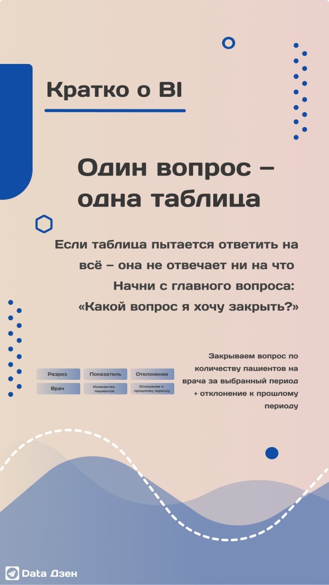 🪧 Если их не превратить в мусор 🙈 В 2022 году на проекте меня попросили: «Сделай табличку — нам нужно все показатели в ней видеть». Спорить не стал, сделал как просили 👌 А через полгода выясняется: её ни разу не открыли. Потому что туда запихнули 8 столбцов план/факт, все разрезы подряд — и ни одного конкретного ответа. Вот в чём фокус 🪄 График — это просто красивая обёртка от таблицы. А таблица — твой главный инструмент анализа. Но только если она отвечает на один вопрос, а не пытается угодить всем. Есть ещё классика 🤓 — «А в Excel можно выгрузить?» На этой фразе уже хочу звать экзорциста. Звучит тревожно. Особенно когда методология согласована, а цифры — не очень. (В Excel ведь так удобно «подправить», правда?) 🤨 Хватит кидать данные в таблицу как в котёл. Строй её как итальянский шеф — с уважением к каждому ингредиенту 👨🍳 Чек-лист годной таблицы ✔️ ➡️ Один вопрос (например: «Почему не приходят на приём?») ➡️ Сортировка по ключевому показателю — сразу виден топ и анти