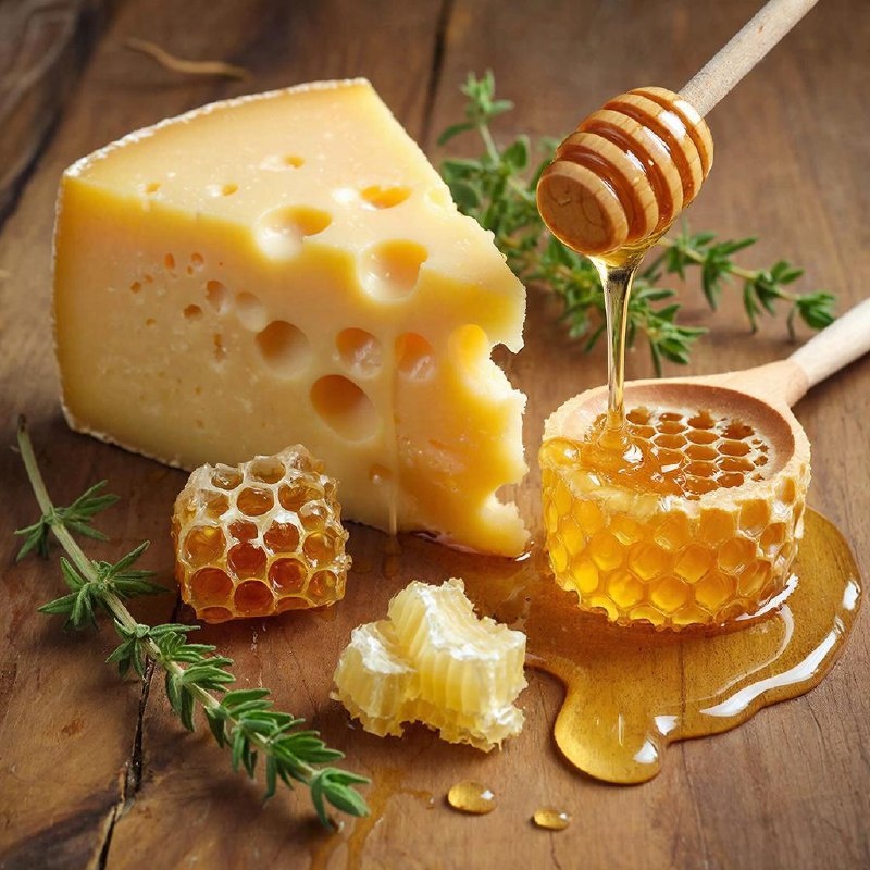 Почему это гениально просто Иногда самые лучшие вещи — самые простые. Как сыр и мёд. Это сочетание, которое не требует рецепта, но всегда выигрышно. Его любят и гурманы, и те, кто просто хочет быстро перекусить с пользой. Почему этот дуэт работает безотказно? Вкус: здесь всё гениально Секрет в контрасте, который создаёт гармонию: 🟡 Соль и сладость. Солоноватая нотка сыра встречается с бархатной сладостью мёда. 🟡 Жир и лёгкость. Богатая, кремовая текстура сыра смягчается текучим мёдом. 🟡Разные «роли». 🟡 Мёд — как яркий акцент, который раскрывает вкус сыра, делает его сложнее и интереснее. 🟡Сыр — как насыщенная основа, которую мёд подсвечивает. Попробуйте две классики: 1. Кусочек твёрдого чеддера с каплей цветочного мёда. Вы почувствуете, как раскрываются ореховые ноты сыра. 2. Ломтик солёной горгонзолы с гречишным мёдом. Резкость сыра смягчится, а вкус станет благородным и глубоким. Польза: один плюс один равно три Их союз выгоден не только для вкуса, но и для здоровья. Пол