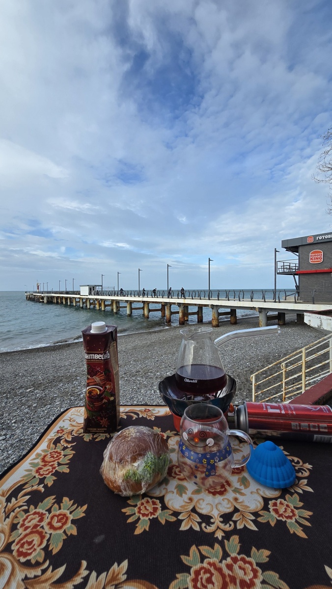 18 февраля в Лазаревском, с утреца уже +20°. На море ветерок гуляет, чуть прохладнее, но солнце начинает пробиваться.