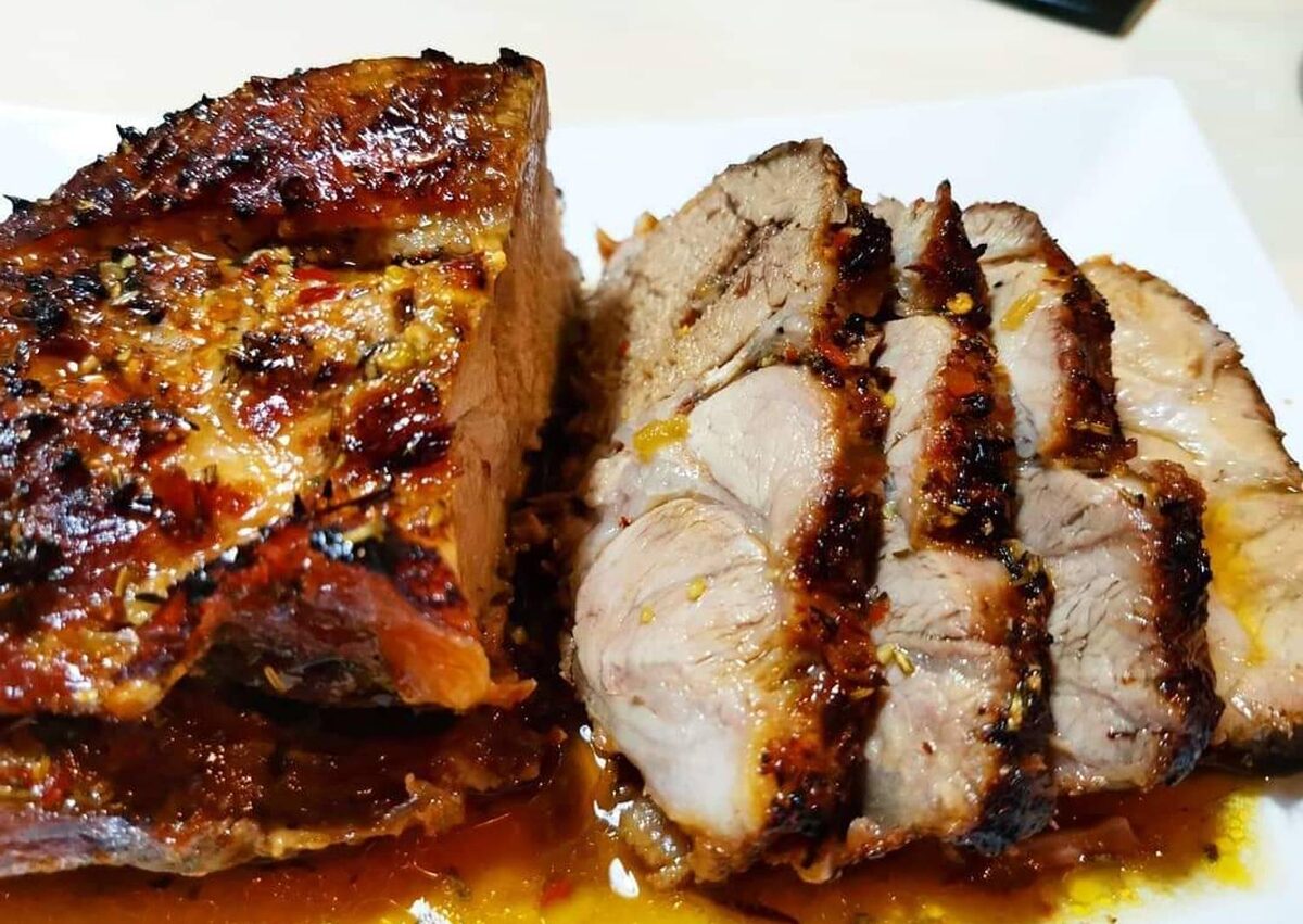 Буженина — это блюдо из куска свинины (реже — другого мяса), которое запекается целиком. Традиционно буженина готовится в духовке, но можно использовать и аэрогриль. Запечённая буженина имеет насыщенный вкус и аромат, а мясо получается сочным и нежным. Буженина может стать как повседневной едой, так и украшением праздничного стола. Она хорошо сочетается с различными гарнирами, например, картофелем, овощами или крупами. Ингредиенты: Приготовление: Мясо тщательно промыть и обсушить бумажным полотенцем. Чеснок нарезать пластинками. В мясе сделать глубокие надрезы и вставить в них пластинки чеснока. Мясо натереть солью и специями со всех сторон. Положить в мясо горошины чёрного перца и лавровые листья. Выложить мясо в аэрогриль и запекать при температуре, указанной в инструкции к аэрогрилю (обычно около 180–200 °C), в течение примерно 1–1,5 часов. Время приготовления зависит от размера куска и мощности аэрогриля. Готовность мяса можно проверить, проткнув его ножом или вилкой — если сок про