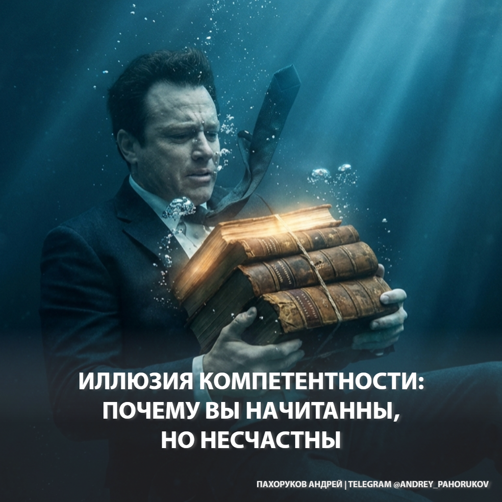 У вас, скорее всего, есть эта «полка позора» (реальная или в папке «Загрузки»). Курпатов, Диспенза, Лабковский, Тони Роббинс, Талеб. Вы знаете про дофаминовые петли, детские травмы, треугольник Карпмана и когнитивные искажения. Вы, вероятно, можете прочитать лекцию о нейрофизиологии лучше, чем среднестатистический психолог.