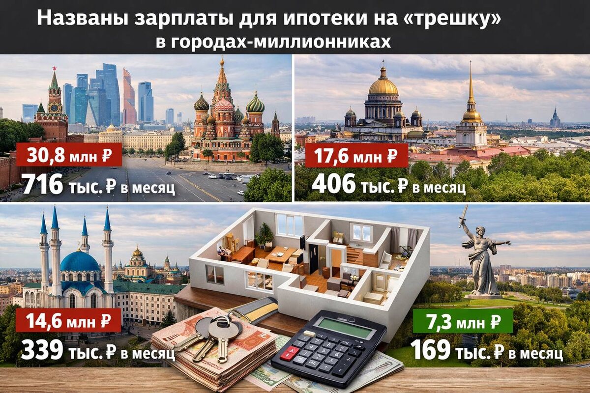 Какие нужны зарплаты для ипотеки на «трешку» в городах-миллионниках?
