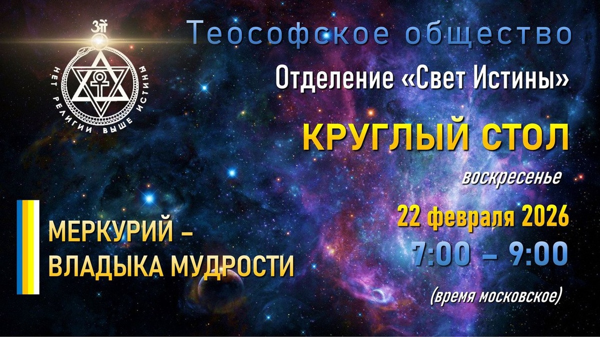 📌📌📌22 февраля 2026 года (воскресенье) в 7.00 (время московское) Отделение Теософского общества "Свет Истины" проводит круглый стол на
