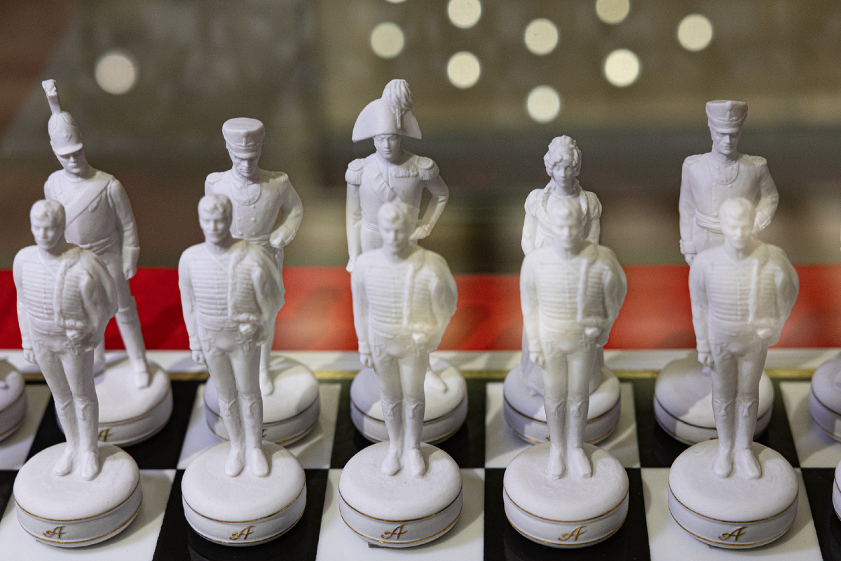 В год 200-летнего двухсотлетнего юбилея победы в Отечественной войне 1812 года скульпторы ИФЗ Галина Белаш и Анатолий Данилов создали комплект шахмат «Россия — Франция. 1812 год». Авторы смоделировали на шахматной доске альтернативную версию развития событий. Вражеские войска идут на мирные переговоры, русские и французские офицеры встречаются не на поле боя, а на балу и без оружия. Шахматные короли — скульптурные портреты императоров Александра І и Наполеона. Королевы — русская императрица Елизавета Алексеевна и французская императрица Жозефина.