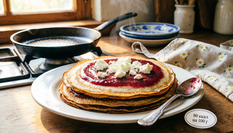 Представьте: воскресное утро. Вы на кухне. За окном морозный узор, а на столе — стопка румяных блинов. Тонких, кружевных, с хрустящими краешками. Рядом — мисочка с малиновым вареньем, таким густым, что ложка стоит. Вы берёте блин, сворачиваете треугольником, макаете в варенье, откусываете... и вдруг чувствуете тот самый вкус. Из детства. Тот, что помнит ваше тело, ваша душа, ваше сердце. Вы закрываете глаза — и на мгновение вам снова 7 лет. А когда открываете, понимаете: это не сон. Это просто правильные блины. Которые можно есть и худеть.