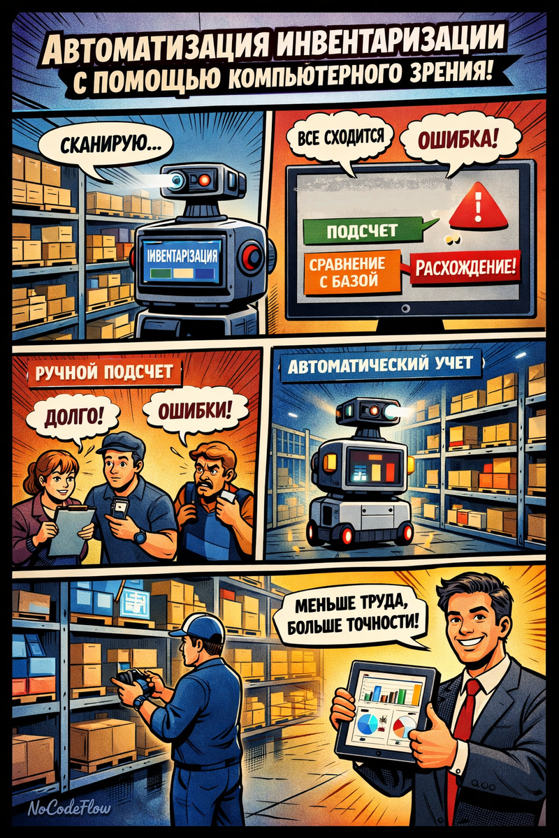 Инвентаризация — одна из тех вещей, которые есть в любом бизнесе, но которые никто особо не любит. Склад, магазин, производство — неважно. Суть одна: нужно пересчитать, сверить, найти расхождения. Обычно это выглядит так: несколько человек с бумажками или сканерами ходят по рядам и вбивают цифры. Долго, нудно, и ошибки все равно случаются.