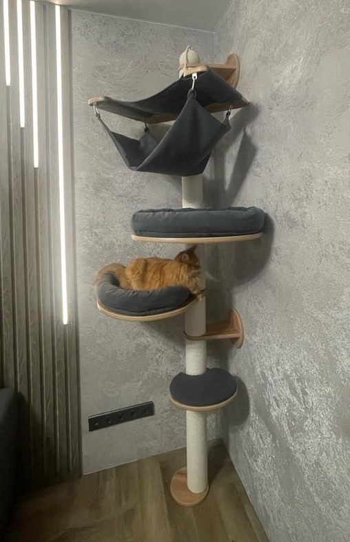 ? Давайте спросим сладкую рыжую булочку на фото ❤️ Теперь у нее есть свое дерево, две лежанки, гамак с качелькой и когтеточка до потолка 😇 Можно бегать, прыгать, лазить, летать и всё это на своем квадратном метре пространства. Но места там предостаточно, так как кошки измеряют пространство не метрами пола, а поверхностями, куда можно посадить свою попу 🫶 ——————————— Цвета на фото: Дуб вотан Светлый канат Фурла 997 Комплекс #кэтстудио_актив4 Стоимость как на фото от 32900 рублей для ткани категории лайт ————————————— А счастье хвостиков бесценно и заказать его можно тут https://t.me/Catstudio_domikidlyakoshek_bot Оформить заказ на сайте: 🐾 Магазин ВК | Сайт🐾