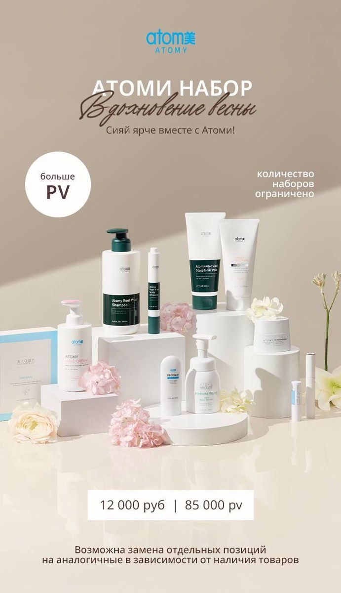 !💐 Представляем набор «Вдохновение весны» — продуманную коллекцию бьюти и уходовых средств, которая станет прекрасным подарком для себя или близких🥰 ✨ 85 000 PV ✨ Выгодная стоимость — 12 000 руб. В составе — продукты для комплексного ухода, которые помогут сиять ярче этой весной🌿 Это отличный вариант: — для подарка к 8 Марта — для знакомства с брендом Важно: возможна замена отдельных позиций на аналогичные в зависимости от наличия товаров✨ Весна начинается с заботы о себе! Успейте оформить заказ — количество наборов ограничено🩵